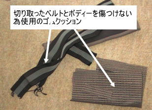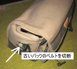 そこで、いらなくなったバックからはずしたベルト類を流用して、幅広のベルトをワンタッチで付ける工夫をしてみた。