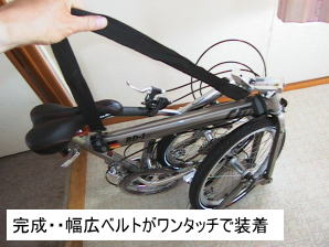 しかし、ベルトの幅が狭く肩に食い込む、なおかつワンタッチでベルトを自転車に着けられない難点がある。
