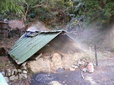 水車村の手前で炭焼きをしていました。むかーし見たことのある風景です。