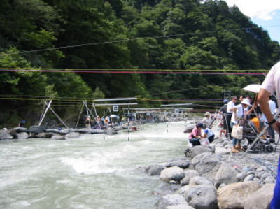 千頭からさらに5km位行くと八木カヌー競技場があり、全国から集まった選手や応援の人でにぎやかでした。
