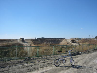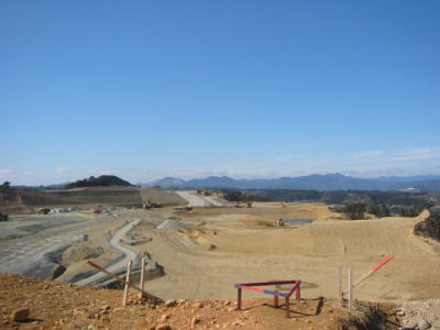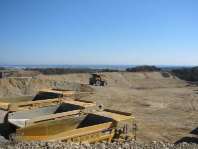 静岡空港の現場 静岡空港の工事現場は日曜日だと言うのに大きなトラックが走り回っていました。