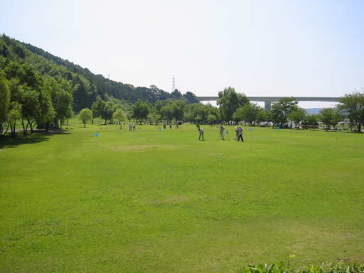 マラソンコースが終わって、工事中の第2東名の先にグランドゴルフの発祥の地とか言われるきれいなグランドゴルフ場があり、子供からお年寄りまでプレイしていました。