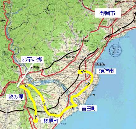 | 静岡県榛原町の牧の原台地を朝10時30分に出発⇒牧の原「お茶の郷」で休憩 ⇒牧の原から榛原町内へ⇒吉田町まで⇒自宅の焼津市へ・・・15時30分のサイク リングでした。 ![]() |