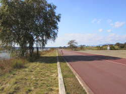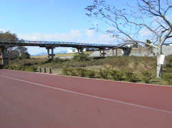 マラソンコースの道路最終地点に到着 平坦な道路で、車・バイクが走れないため、快適なサイクリングができた。 しかし、距離は、思った以上にあり、ひざ、足は筋肉疲労・・・もう少し鍛えねば!!(^_^;) |