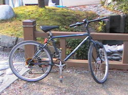 | 同行のY.H氏のマウンテンバイク | 筆者の折り畳みMIYATA27インチバイク |