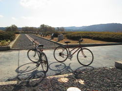 | 途中の大井川川越地点 | Y.H氏と筆者の自転車 |