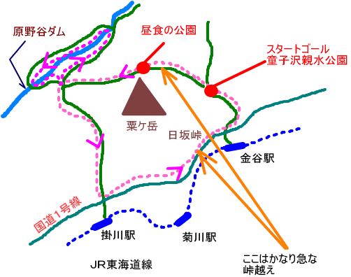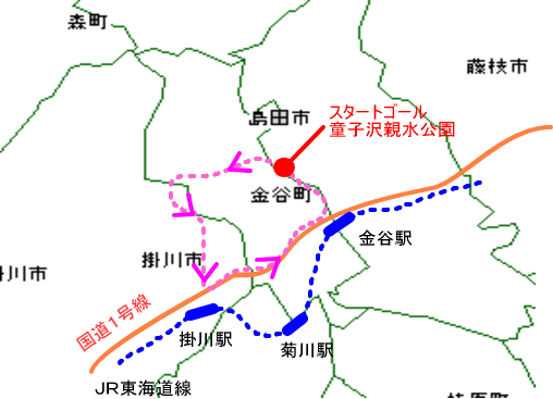 | ■ 焼津市→(車)→金谷町→山越え→掛川市→日坂峠→金谷町 ■ |