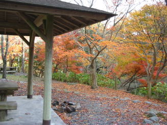 ![]() 約1時間程はしり・・コンビニで買った 昼食を!!・・なんと綺麗な紅葉が・・ |