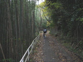 | こんな竹林の道が続きます | 落ち葉を踏みしめながらの走行が!! |