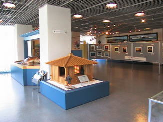 御前崎町の海岸線に下りると、なぶら館、なぶら市場に到着。 上は、なぶら館前にある漁船 左は、資料館の展示風景 >> 御前崎町 なぶら館 >> 御前崎町 なぶら市場 |