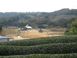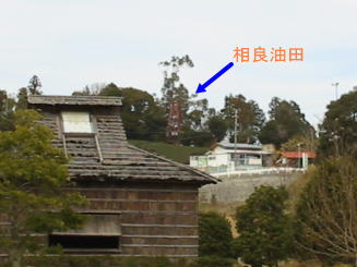 相良油田の下には「油田の里」が、 右上は油田から見た油田の里、上 は油田の里からみた相良油田です。 「油田の里」には資料館もあり、ゆっ くりくつろげる場所でもある・・・・・・! |