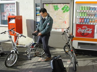 | 輪行で菊川駅に到着・・組み立てるIKUROさん!早速スタートを | |