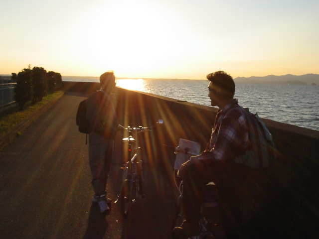 | 浜名湖自転車道路を進む頃にはすっかり夕暮れ急がなくては |