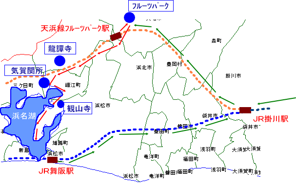 ■天浜線フルーツパーク駅下車→気賀関所から浜名湖自転車道で弁天島■
