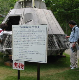 ![]() なんと、アポロ宇宙船の実物が。。 なんで、「ゆりの里」の庭にあるの?? 訳はよく解りませんが。。本物のようです。 しかし、数日後の靜岡新聞では、6月まで の展示である事が記載されていた?? |