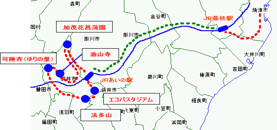 | ■ 焼津市→(BD-1)→藤枝駅→(輪行)→あいの駅→エコパスタジアム・・・法多山・・・可睡斉(ゆりの里)→油山寺→加茂花菖蒲園・・・・・あいの駅→(輪行)→藤枝駅→焼津市 ■ |