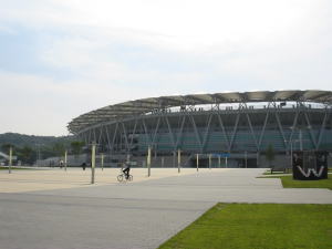 | あいの駅のすぐ先にはエコパスタジアムが。一山下ると法多山の山門に! | |