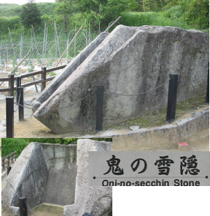 ![]() 坂を上り・・「鬼のまな板」(本当に?) 道を隔てて「鬼の雪隠」が(下↓) |