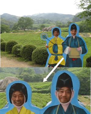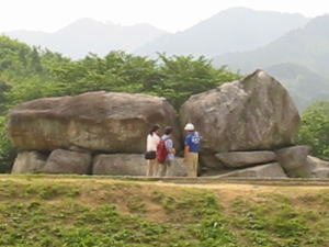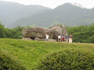 ![]() なんと壮大な古墳! 「石舞台古墳」 SUZUKIさん(左)!とIKUROUさん(右) が記念写真。。飛鳥時代に溶け込んでますね! |