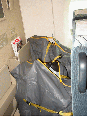 ![]() 当日指定で、車両最後部席(輪行ではここしか 座れない?)は既に満席、仕方なくグリーン車 を利用しての。。。。。ちょっと予算オーバー? 新婚旅行以来かな・・って全員が納得^_^; 折り畳んで袋に入れた自転車はここに→ |