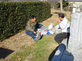 平成16年正月3日の初詣走行を終了し、最後 は藤枝の蓮花寺池公園にて新年祝賀会?・・ 近くのスーパーで買った酒(熱燗)とビール・・ それぞれのつまみを調達・・約1時間半の野外 宴会?・・ちょっと飲みすぎたが・・正月でもあ り良いか・・思い出に残る正月となりました。^_^; |