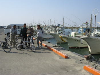 ![]() 土曜日は焼津から65km走行、遠州の からっ風をまともに正面から受けて走行 やっと、福田に6時に到着・・・・・! 一泊後、日曜日朝出発前に記念写真を! |