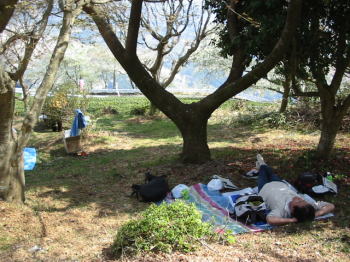 ![]() 体力を使い・・花見の宴会を終え 昼寝にくつろぐ・・YOSIさん!! |