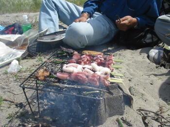| ★相良町に到着・・まずは、バーベキューを囲みビールを★ | |
