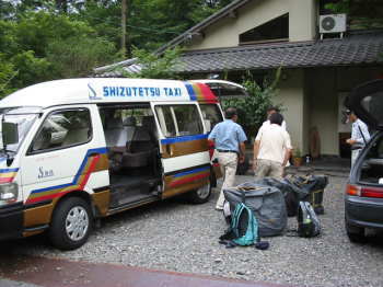 ![]() 午後3時30分静岡からジャンボタクシーで目的地の「コンヤ温泉」に今日は自転車も休憩。車内は空調はきき、車高もあり快適!自転車5台と5人が余裕で乗車できます。 |