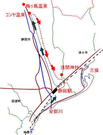 | 【コース】 出発 24日(土)午後3:30分>>>帰宅 25日(日)午後1時 走行は約47km ●焼津→車→静岡→ジャンボタクシー→コンヤ温泉→宿(銘酒館)一泊→BD−1ツーリング→静岡→車→焼津● |