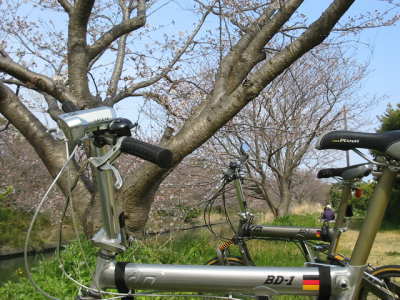 木屋川土手にて花見宴会(*^_^*) 桜の下でBD−1も嬉しそう!! |