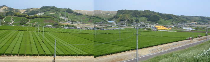 ![]() 牧の原台地から、静岡空港建設地を望む・・手前にお茶畑が広がる 牧の原台地では、多くのお茶工場からお茶の新緑の香りが! |