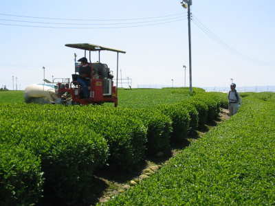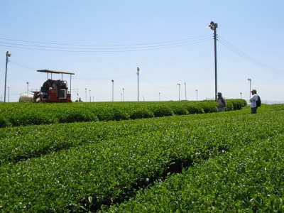 1番茶のお茶刈は、ほぼ終了していたが、機械を使って作業する様子を見学。 真剣に作業を観察する二人。 この後、お願いして製茶工場も見学・・お茶の作業工程を教えて頂きました。 |