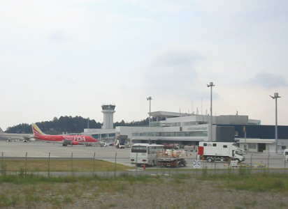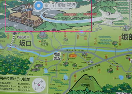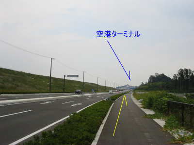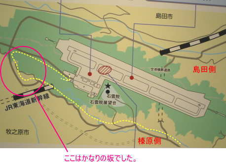 | きつい坂を上り切り、右折すると静岡空港が見える | ||