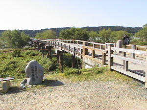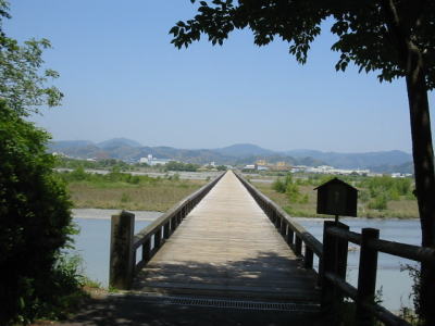 ![]() マラソンコースの上に位置する蓬莱橋 |
