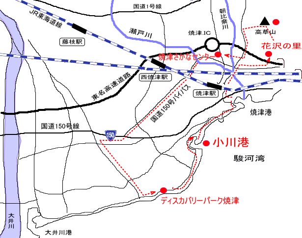 平成23年6月10日(金) 焼津市内をポタリング走行! ディスカバリーパークから高草山経由さかなセンターまで! 9時30分出発〜14時30分:帰宅 ディスカバリーパーク前海岸線⇒花沢の里⇒高草山中腹 ⇒さかなセンター 走行:35km |