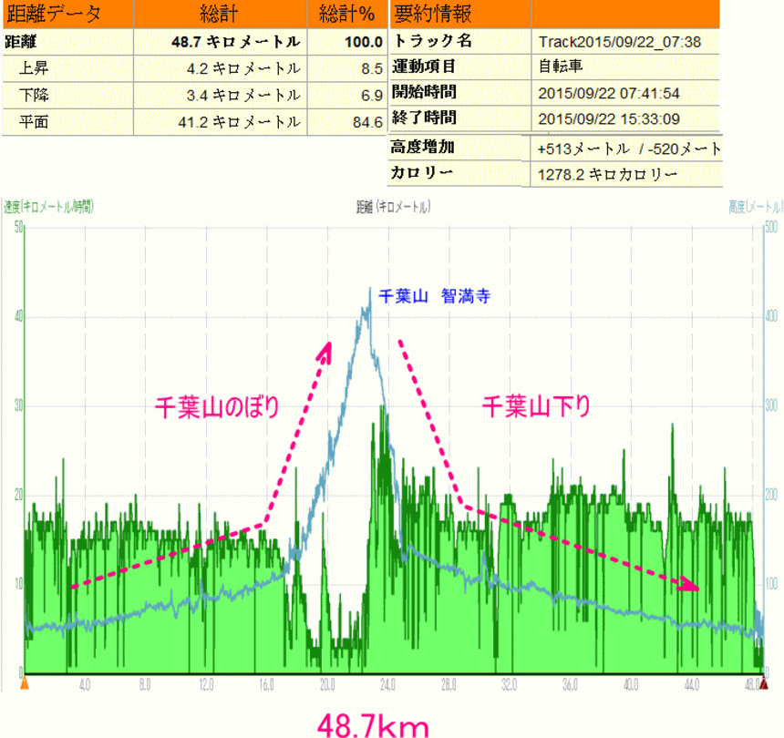 走行距離48.7kmを、休みながら何とか走ることができました。