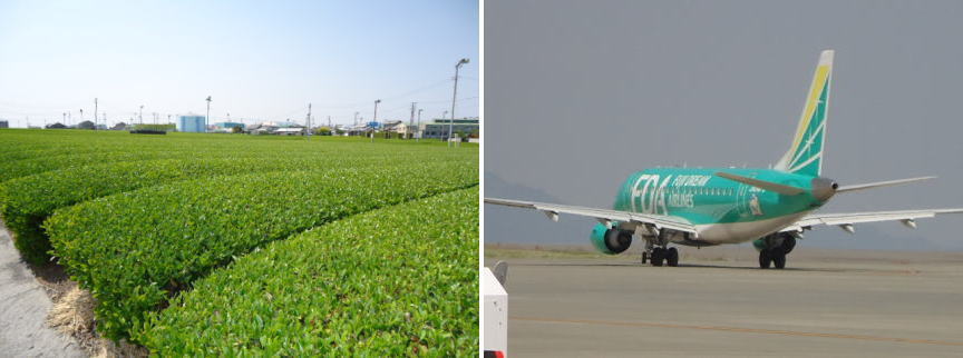![]() 5月の牧之原茶畑を見ながら走ると静岡空港に到着。 |