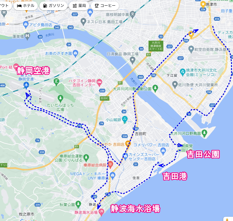 さっそく、焼津の海岸線から海沿いで吉田港へ・・・