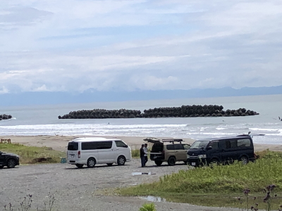 去年とは違って、港の先ではサーフィンする人の姿が多く見られました。 |