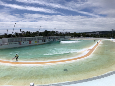 静波海水浴場から少し150線方向に入ると、2021年8月にオープンした「静波サーフスタジアム」に着きます。