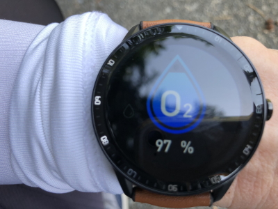 高齢になって心配なのが健康です。 BD-1で走って健康には良いのですが、走っている時に異常がでたら・・今回は、血中酸素濃度が測定できる腕時計を時々見ながら走行しました。